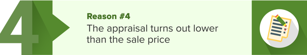 Buyers who apply for a mortgage will be asked by their lender to pay for an appraisal of the property. Unfortunately, sometimes the home appraisal comes in at less than the asking price. This can be a huge deal breaker to buyers because banks will only lend them the appraised value of the home, and not all buyers can afford to pay the difference. This situation is common in a seller's market where there’s limited housing inventory and the rampant bidding wars cause prices to go beyond the normal home value.